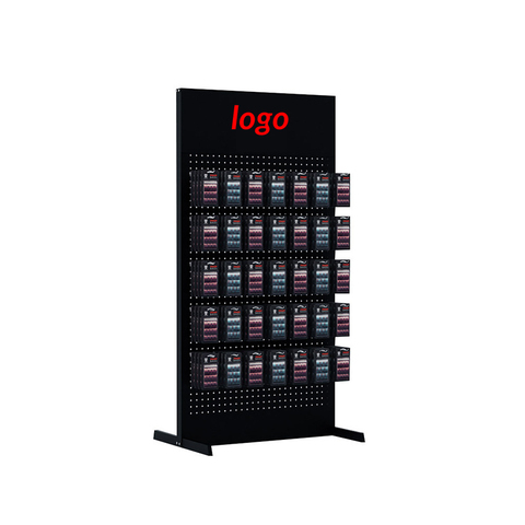 マットブラック金属板ディスプレイスタンドスーパーマーケット表示カスタムロゴ印刷ラック